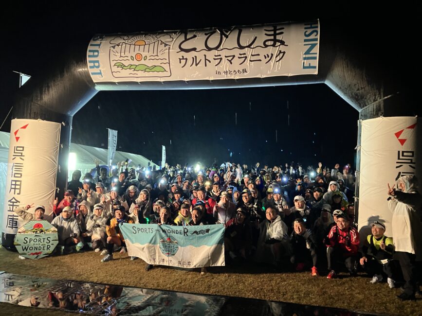 【イベント開催報告】とびしまウルトラマラニック2025 2025.12.15 事務局 今年も全国から約550名のランナーにお集まり頂き、イベントは盛況の内に終えることが出来ました。 前夜祭ではランナーとエイドステーションの地元スタッフとの交流や恒例のじゃんけん大会など大いに盛り上がりを見せました。 イベント当日はあいにくの雨天スタートとなりましたが、次第に晴れ間も見え、瀬戸内海の絶景とエイドステーションの地元産品を堪能しながら笑顔でフィニッシュするランナーの姿が見受けられました。 次回以降も、地元小学生にランニングシューズプレゼントなど地域に恩返し出来る企画を行なっていきます!